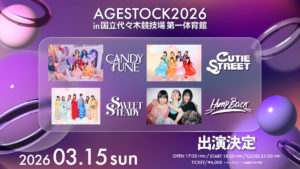 この度『 AGESTOCK2026 in 国立代々木競技場 第一体育館 』 にCANDY TUNE / CUTIE STREET / SWEET STEADY / Hump Back の出演が決定いた […]