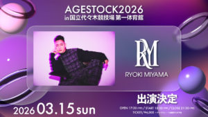『 AGESTOCK2026 in 国立代々木競技場 第一体育館 』にRYOKI MIYAMAが出演決定!
